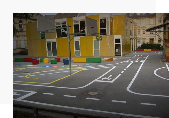 Damit sich die Schülerinnen und Schüler zu sicheren Verkehrsteilnehmern entwickeln, findet bereits in der Grundschule eine Radfahrausbildung statt. Diese schließt mit einer praktischen und theoretischen Prüfung ab. Um die Prüfung und die nachfolgende Teilnahme am realen Straßenverkehr erfolgreich zu bestehen, üben die Schüler und Schülerinnen zunächst auf dem Schulhof. Hierbei ist die Markierung eines Verkehrsparcours äußert hilfreich, da er die realen Gegebenheiten simuliert und die Gefahrenpunkte erkennbar macht, bevor im wirklichen Straßenverkehr geübt wird.
